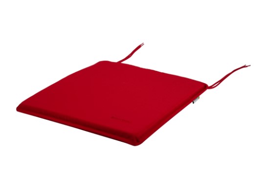 Данная подушка предназначена для садовой мебели, по бокам у неё есть специальные завязки, благодаря чему такую подушку с лёгкостью можно закрепить на мебели. Эта подушка имеет красный цвет, а изготовлена из такой ткани, как полиэстер. Ткань является съемной, она подойдёт для машинной стирки. Для того, чтобы изделие было удобно фиксировать, на мягком элементе есть завязки. Ширина изделия составляет 40 см, длина также составляет 40 см, а толщина 3 см.